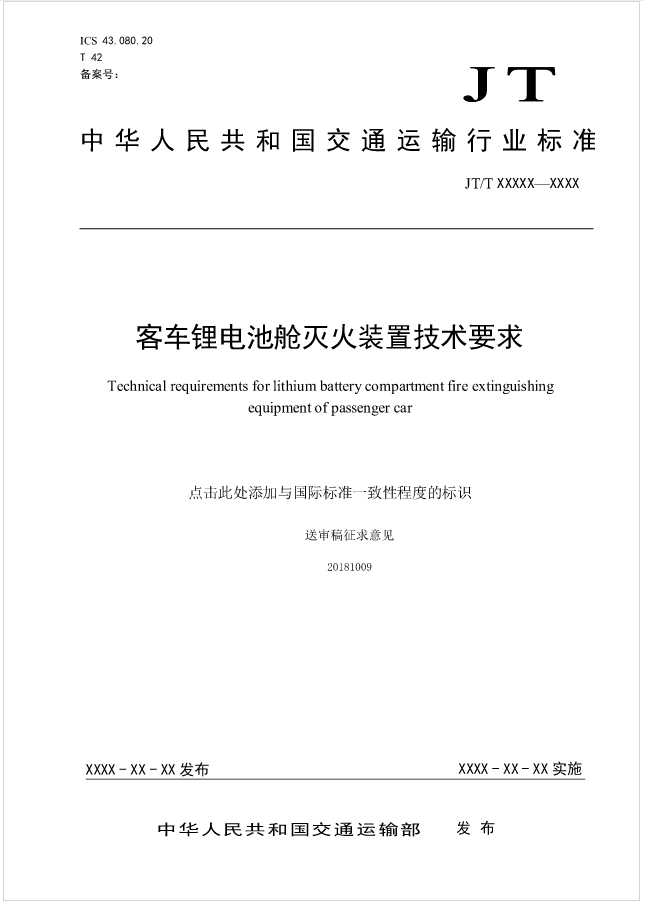 2018年10月22日,在北京長(zhǎng)安白云大酒店召開(kāi)了《客車鋰電池艙滅火裝置技術(shù)要求》標(biāo)準(zhǔn)編制組內(nèi)討論會(huì)議。此標(biāo)準(zhǔn)按照GB/T 1.1-2009給出的規(guī)則起草,并由全國(guó)汽車標(biāo)準(zhǔn)化技術(shù)委員會(huì)客車分技術(shù)委員會(huì)(SAC/TC114/SC22)提出并歸口。我司副總經(jīng)理周曉蓉參加了本次標(biāo)準(zhǔn)編制討論會(huì)議。